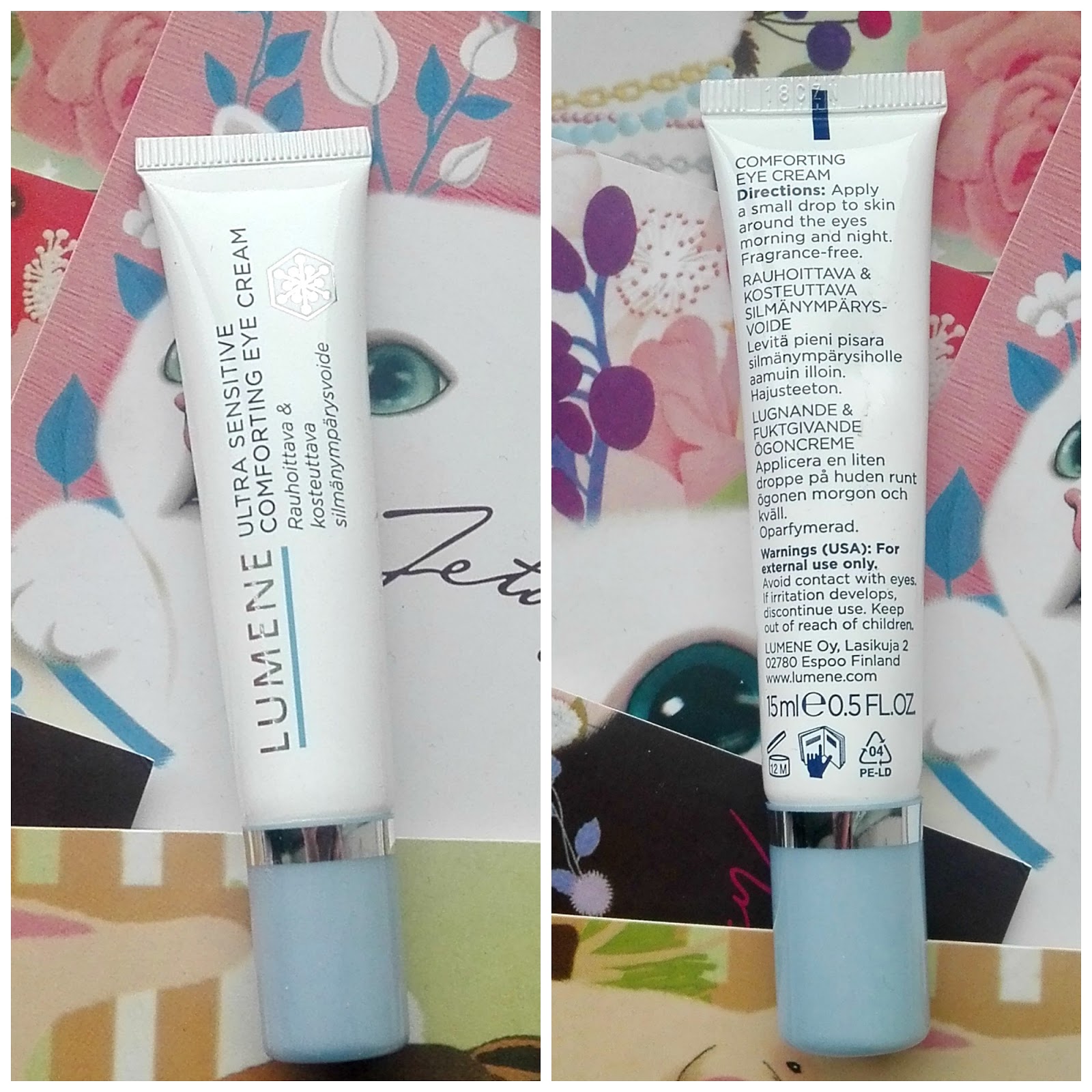 Почта России подвела меня и потеряла где-то на своих складах, а может кто-то спер мой крем для глаз из Кореи, так что пришлось в срочном порядке покупать что-то в ближайшем магазине, выбор пал на марку Lumene - т.к. из бюджетных марок она единственная, что не вызывает раздражения на моей чувствительной коже.